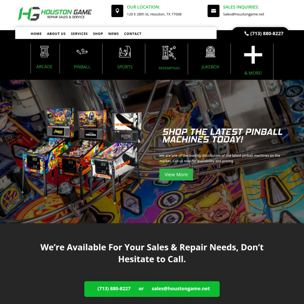 Houston Game operates in a highly competitive entertainment and retail space, offering arcade machines, games, and related products to both local customers and online buyers. While the business had strong products and demand, their digital presence was fragmented and underdeveloped.
